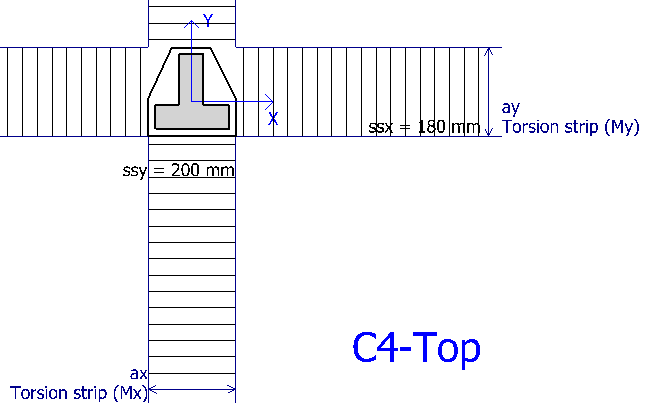Example Punching Shear design output, showing a column's Critical Shear Perimeter and Torsion Strips.