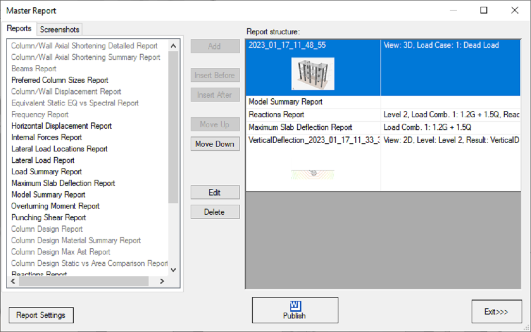 A screenshot manager has been added to the software to allow any of the software's graphical outputs to saved and added to the report.